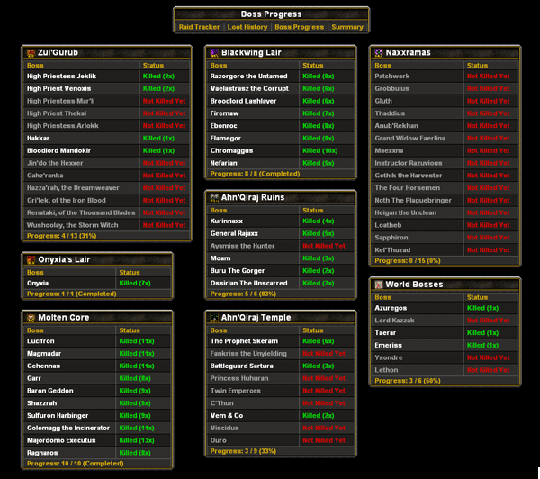 Download Details: Raid TrackerLocation: Downloads >WoWRoster > 1.7.x AddOns Not Supported > Raid Tracker | |||||||