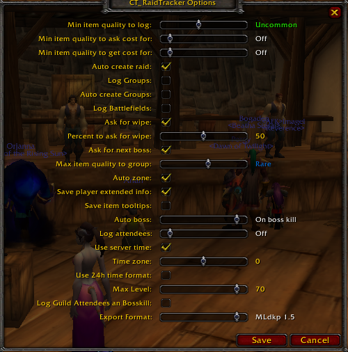 well, everything is working correctly currently. As far as the installation wiki, I was wondering if settings for ctraidtracker that wowroster raid tracker uses/understands could be posted. Any changes to the defaults as shown in the picture attached?