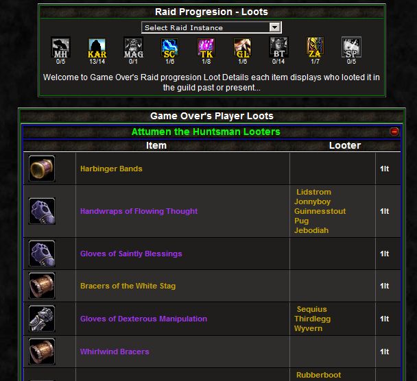 Database - the boss loot database is allmost finished have all of bt and gruul's loottables inputed