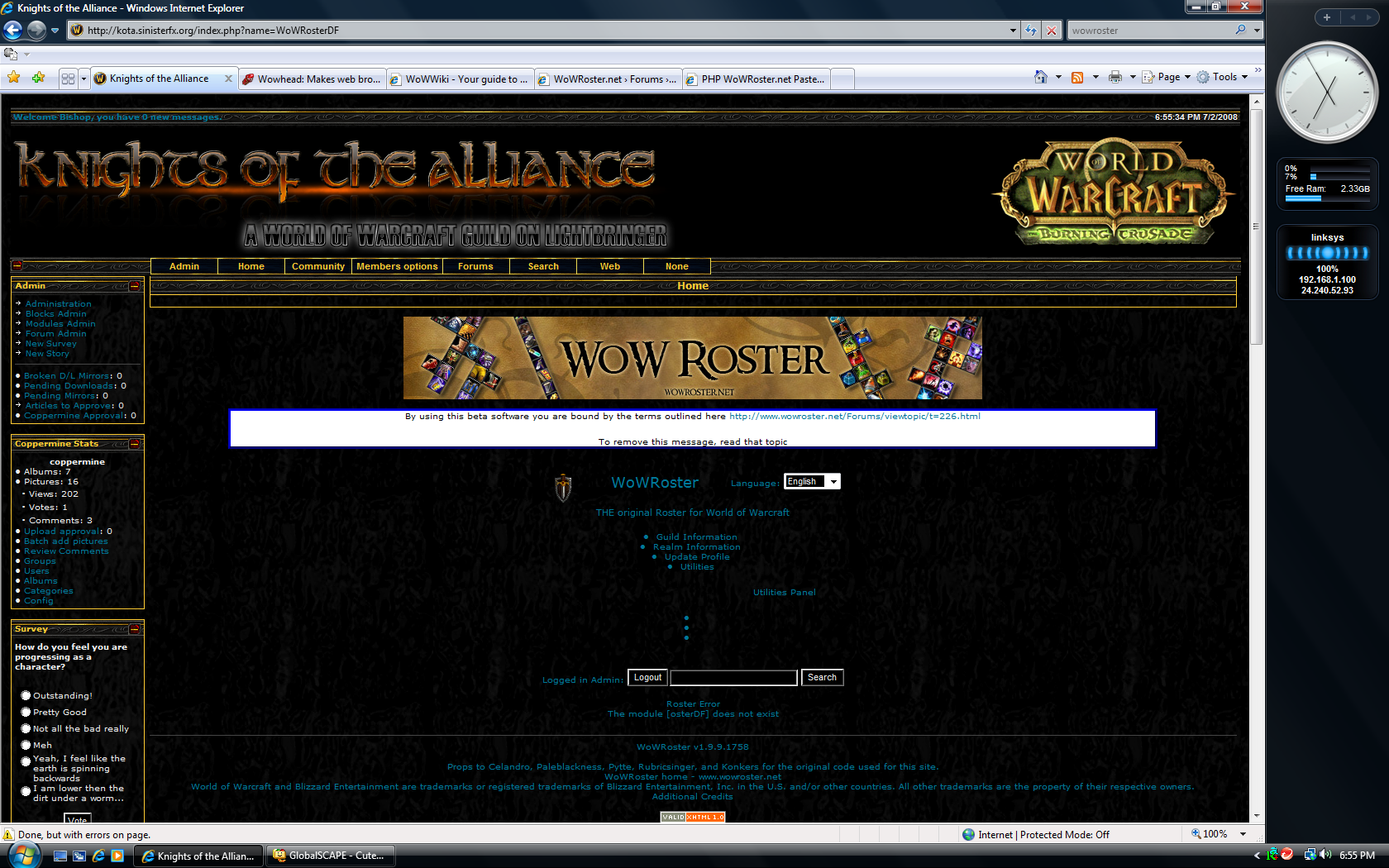 I am using the file I posted in the pastebin with one of my sites which is served by linux. I am able to so far view roster with and with out leolinking turned on.