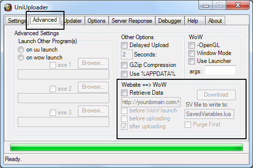 Uniuploader is a client-side program for Windows that many people use to help automate the process of uploading module data files to their web site. The basic idea is that you configure it to point it at the module data file you want to upload, and then you tell it what URL it will upload the file to, and your login info for that URL. Uniuploader will then automatically upload your data file whenever you quit WoW (or whenever you configured it to do so), and thereby (assuming you ran the /gt roster command in-game to update your data file) accordingly update your roster.