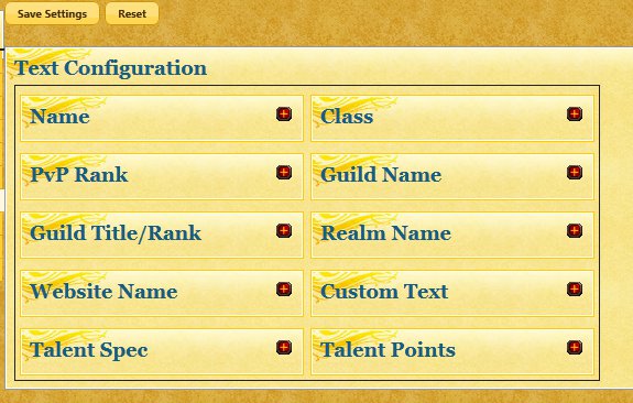 Started working on it tonight. The reason the text config boxes do not work is because I had hardcoded the div hide/show and now the javascript functions are not present in Roster 2.1 I'm also updating the interface to match Roster's main config, and adding a few small tweaks.